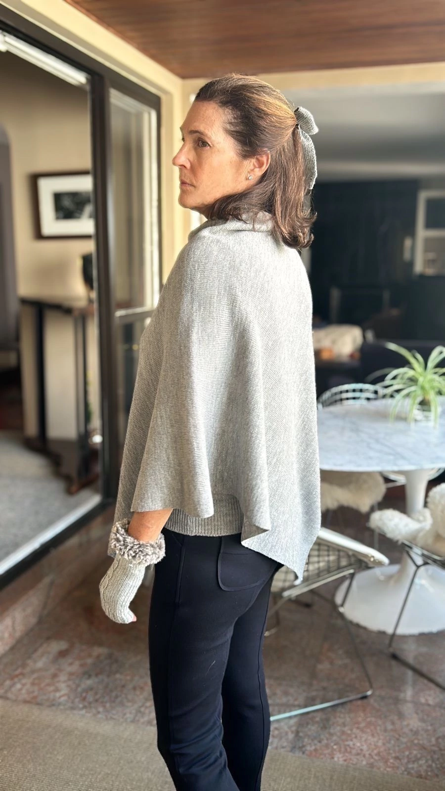 Por favor, note que a luva Lion cinza claro e o laço de tricô não fazem parte do Poncho.