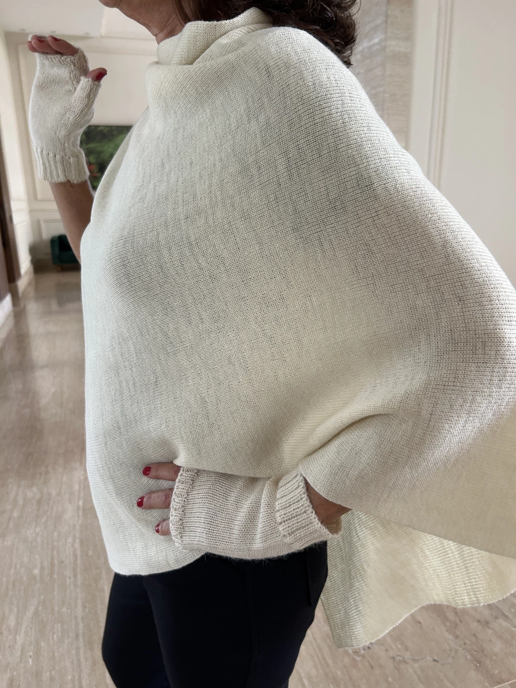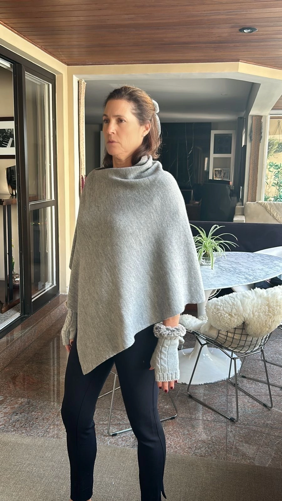 Descubra o Poncho Londres, uma peça que une sofisticação e conforto em cada detalhe. Produzido artesanalmente com 100% lã de ovelha merino, este poncho é uma verdadeira obra-prima, feito no ponto liso em uma máquina de tricô doméstica e costurado à mão.